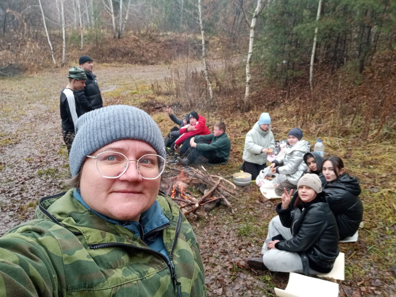 Определив себе место для бивуака, ребята с помощью своих руководителей натянули тент от непогоды и развели костёр для приготовления вкусного обеда. Некоторые впервые познакомились с туристическим снаряжением, определили вещи первой необходимости, которые обязательно нужно брать в поход.